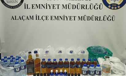 Samsun'da düzenlenen operasyonda sahte içki imal ettiği öne sürülen zanlı gözaltına alındı. Operasyonda, 25 litre etil alkol, 9 litre sahte içki, 4 adet 100 gramlık anason yağı, 9 adet 30 gramlık arpa aroması, plastik huni ve 4 plastik damla aparatı ele geçirildi.