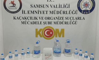 Samsun'un İlkadım ilçesinde, sahte içki üretimi ve satışı yapan bir şüpheli, İl Emniyet Müdürlüğü ekipleri tarafından gözaltına alındı.