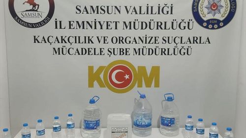 Samsun'un İlkadım ilçesinde sahte içki üreten bir kişi yakalandı. Operasyon kapsamında çok sayıda sahte içki ve etil alkol ele geçirildi.