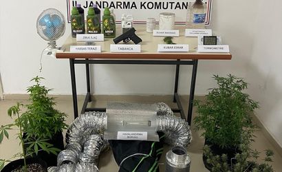 Samsun'da evinde kurduğu düzenekle uyuşturucu imal eden zanlı gözaltına alındı. Adreste arama yapan ekipler, H.K'nin (31) evinde kurduğu iklimlendirme düzeneğiyle Hint keneviri yetiştirdiğini belirledi. Ekipler evde 13 gram esrar, 4 kök Hint keneviri, ruhsatsız tabanca, uyuşturucu kullanma aparatı, hassas terazi, 18 tabanca fişeği ile 6 litre sıvı gübre ele geçirdi.