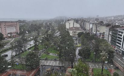 Samsun'un Atakum, İlkadım ve Canik ilçelerine kar yağdı. Kent merkezindeki kar yağışı dronla görüntülendi.