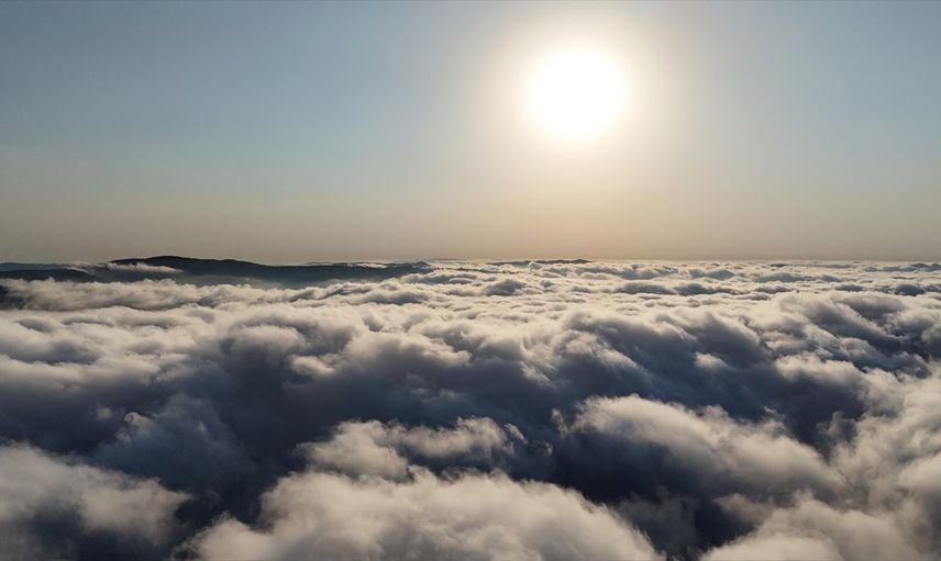 Samsun'un Alaçam ilçesinde yer alan 1650 rakımlı Dürtmen Dağı'nda oluşan "sis denizi", dronla kaydedildi.
