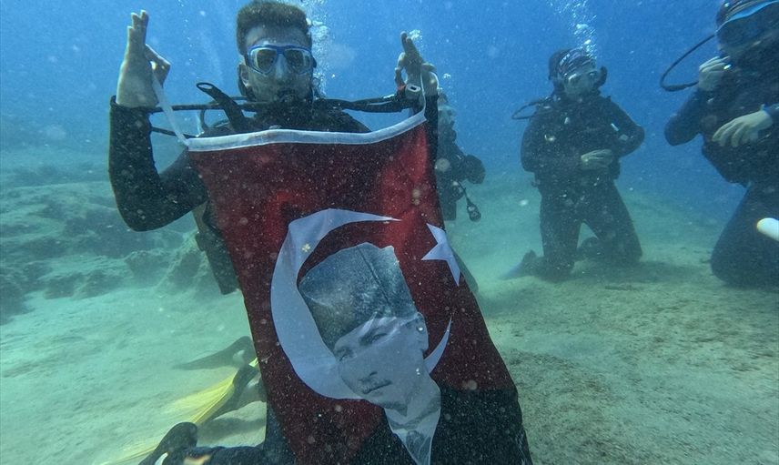 Samsun'un Bafra ilçesinde sualtı sporcuları, 19 Mayıs Atatürk'ü Anma, Gençlik ve Spor Bayramı dolayısıyla Antalya'da denizin altında Türk bayrağı açtı.