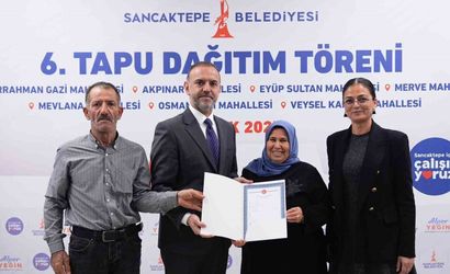 Sancaktepe Belediyesi, uzun yıllardır süregelen tapu sorunlarını çözmeye devam ediyor. Abdurrahman Gazi, Akpınar, Eyüp Sultan, Merve, Mevlana, Osman Gazi ve Veysel Karani mahallelerinde yaşayan ve yıllardır tapularını bekleyen 83 hak sahibi, düzenlenen törende tapularına kavuştu.
