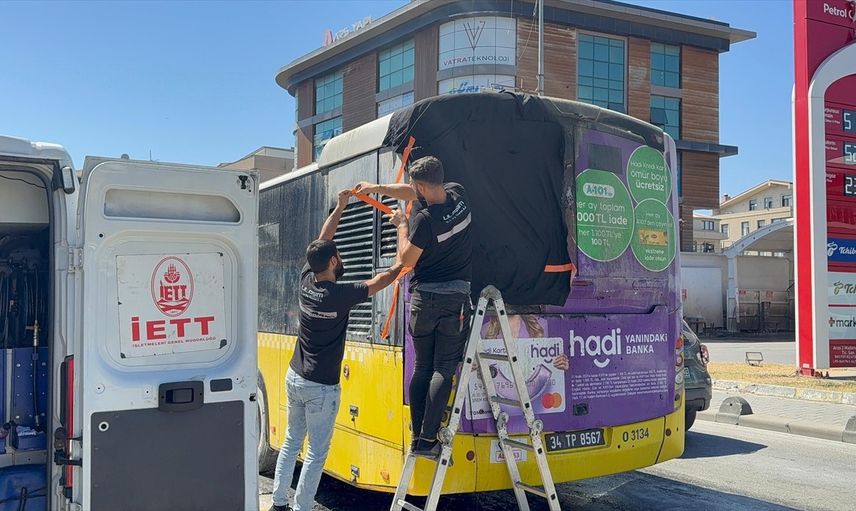 Sancaktepe'de seyir halindeki İETT otobüsünün motor kısmında çıkan yangın söndürüldü.