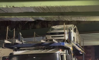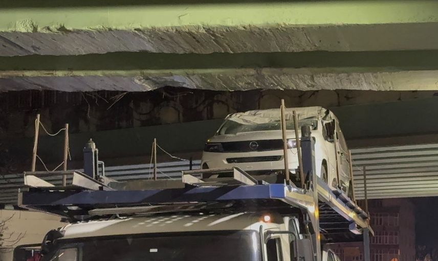 Sancaktepe'de, Kızılay Caddesi'nde ilerleyen 06 EHL 486 plakalı taşıyıcı, sürücüsünün ismi belirlenemeyen yeni araçlarla dolu bir şekilde üst geçide çarptı.