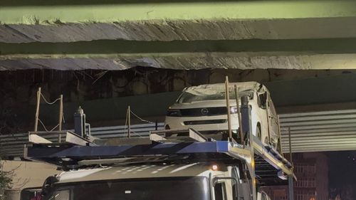 Sancaktepe'de bir taşıyıcı üst geçide çarpması sonucu 3 araçta hasar meydana geldi.