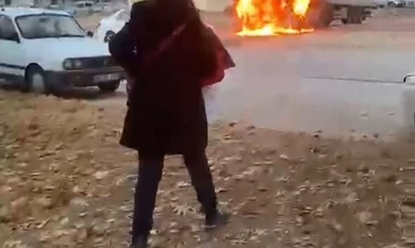 BİRECİK İLÇESİNDE KADIN SÜRÜCÜNÜN, ALEV ALAN TIRIN YAKININA PARK ETTİĞİ OTOMOBİLİNİ ALMAYA ÇALIŞTIĞI SIRADA PATLAMA YAŞANDI