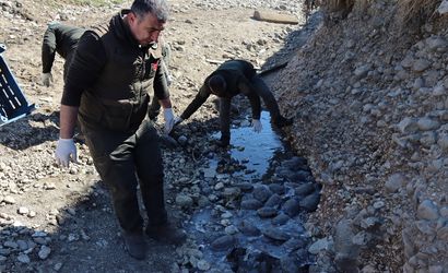 Şanlıurfa'nın Eyyübiye ilçesinde ıslah çalışmaları sırasında suyu kesilen derede mahsur kalan 316 kaplumbağa kurtarıldı.