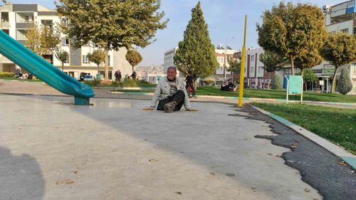 Şanlıurfa Haliliye Devteşti Mahallesi'nde 70 yaşındaki Abdurrahman Alev, akülü sandalye alamadığı için her gün yerde sürünerek parka gidiyor; yaraları var.