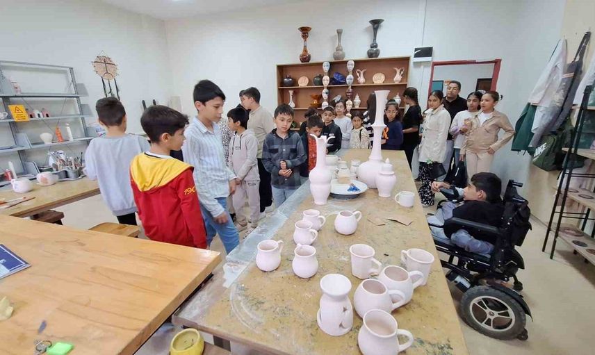 Şanlıurfa Büyükşehir Belediyesi bünyesindeki Zübeyde Demirkol Gençlik Merkezi kursiyerleri, Engelliler Koordinasyon ve Yaşam Merkezindeki engelli bireylerle bir araya gelerek atölye çalışmalarına katıldı.