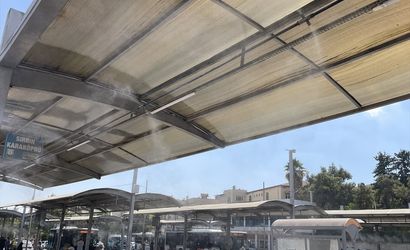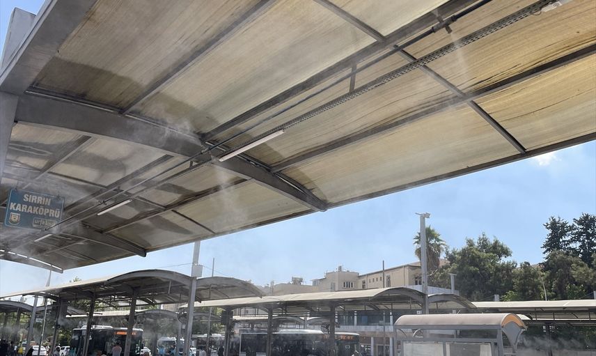 Büyükşehir Belediyesi otobüslerinin toplandığı durakta bekleyen vatandaşlar, soğuk buharlı su püskürtme sistemi ile serinlemeye çalışıyor. Ancak, bu yüksek sıcaklıklar nedeniyle kentin işlek cadde ve sokaklarında belirgin bir sakinlik gözlemleniyor.