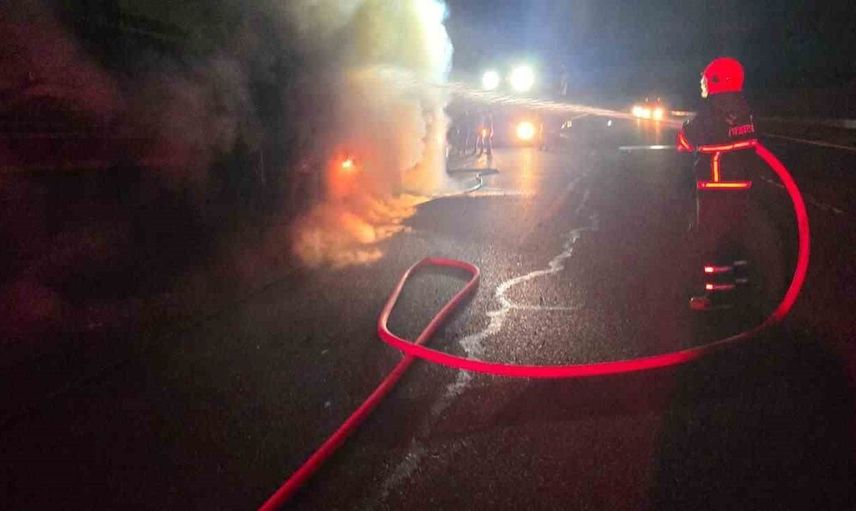 Yangın, lastiklerin tutuşmasıyla başladı ve kısa sürede yayıldı. Sürücünün 112 Acil Çağrı Merkezi’ne bildirimde bulunmasının ardından bölgeye itfaiye ve jandarma ekipleri sevk edildi. Kısa sürede olay yerine intikal eden itfaiye ekipleri, alevlere müdahale ederek yangını kontrol altına aldı.