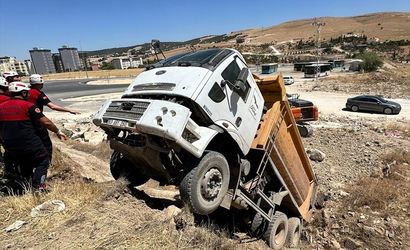 Şanlıurfa'nın Haliliye ilçesinde gerçekleşen olayda, İbrahim A. yönetimindeki 63 ABY 260 plakalı hafriyat kamyonu, Güzelyurt Mahallesi yakınlarında kontrolden çıkarak şarampole düştü.