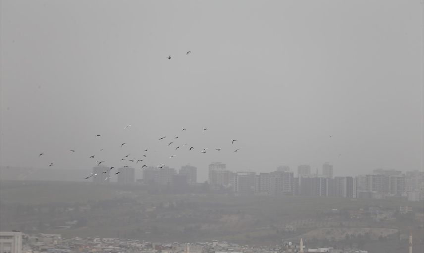 Şanlıurfa'da toz taşınımı hayatı olumsuz etkiledi, toz bulutu nedeniyle görüş mesafesi düştü.