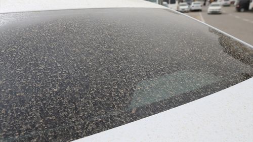 Şanlıurfa'da etkili olan toz taşınımı, görüş mesafesini düşürdü ve araçları tozla kapladı.