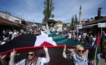 Bosna Hersek'in başkenti Saraybosna'da yüzlerce kişi, İsrail'in Gazze'ye düzenlediği saldırıları protesto etmek amacıyla bir araya geldi.
