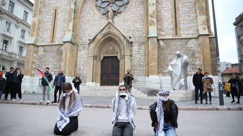 Bosna Hersek'in Saraybosna'sında halk, İsrail'in Gazze'deki saldırılarına tepki göstererek alıkonulan Küresel Sumud Filosuna destek yürüyüşü düzenledi.