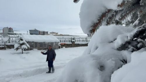 Sarıkamış erken yağan karla beyaza büründü. Drone görüntüleri, Sarıkamış Kayak Merkezi, sarıçam ormanları ve yer yer 50 santime ulaşan karı ortaya koydu.
