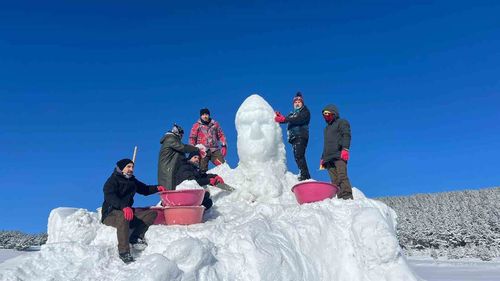 Kafkas Üniversitesi ekibi, eksi 15 derece soğukta Sarıkamış şehitleri için kardan heykeller yapıyor; yaklaşık 200 kamyon kar taşındı, açılış 3-4 Ocak 2026 tarihinde yapılacak.