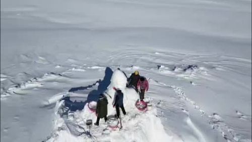 Sarıkamış’ta 111. yıl anmalarında Kafkas Üniversitesi ekibi, eksi 15°C'de 200 kamyon karla 6 kişilik ekip tarafından kardan şehit heykelleri yapıyor.