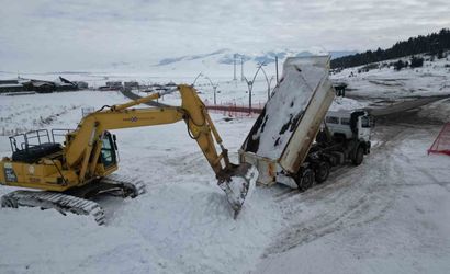 İl Özel İdaresi ve Sarıkamış Belediye Başkanlığına ait iş makineleriyle kar taşıma çalışmaları devam ediyor. Yeterli kar temin edildikten sonra heykellerin yapımına geçilecek.