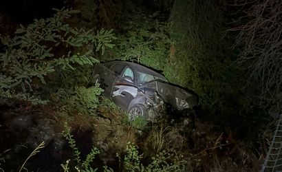 Çarpışmanın etkisiyle araçlar yoldan çıkarak yol kenarındaki tel örgüleri aştı ve yaklaşık 5 metre yükseklikten ormanlık alana düştü.