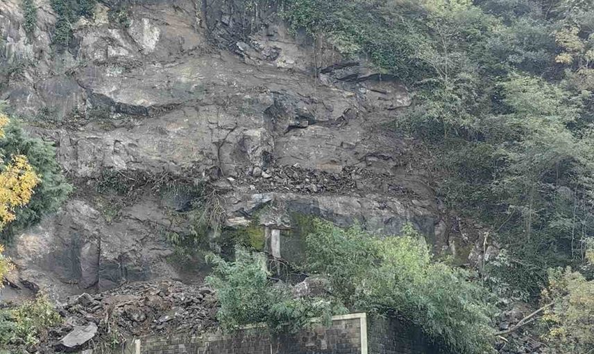 Artvin Kemalpaşa'da tünel girişinde kaya ve toprak düşmesi