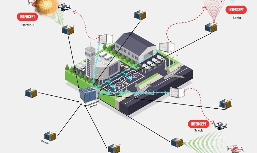 Diğer yandan, yüksek hızlara ulaşabilen ve etkili önleme yöntemlerine sahip bir Müdahale Dronu geliştirildiği aktarıldı. Bu platform; otonom görev yürütme, güvenli iniş/eve dönüş modları ve gerektiğinde güvenli alanda kendini imha kabiliyetlerine sahip olacak.