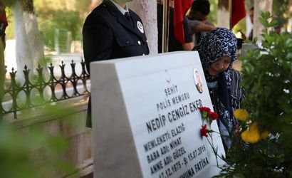 Tellidede Mezarlığı'nda gerçekleştirilen anma programı sonrası, Vali Yakup Canbolat şehitlik anı defterini imzaladı. Dua edilmesinin ardından protokol üyeleri, FETÖ'nün darbe girişimi sırasında şehit olan Nedip Cengiz Eker'in mezarını da ziyaret etti. Ziyaret sırasında şehidin mezarlarına karanfiller bırakıldı.