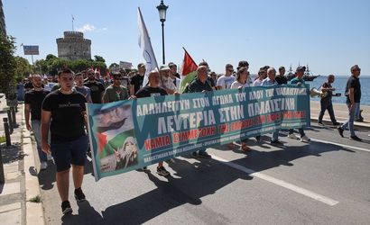 Selanik İşçi Merkezince dağıtılan bildiride, “Filistin halkı yalnız değildir. Tüm emekçiler ve halklar, barış ve özgürlük için aynı cephede buluşmalıdır.” ifadeleri yer aldı.