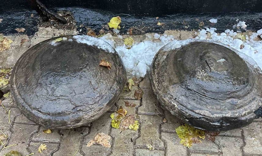 Çalışmalar sırasında toprak altından çıkan 6 adet taşın her biri 200 kilogramın üzerinde ağırlıkta. Taşların farklı yapısını fark eden Konur Köyü Muhtarı Cafer Gezer, taşları iş makineleri yardımıyla bulunduğu yerden aldırarak evinin önünde muhafaza etmeye başladı.
