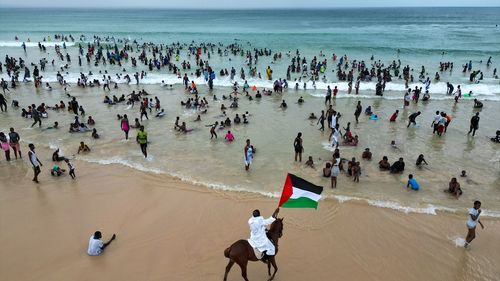 Senegal'in Dakar kentinde Thierno Gueye, Filistin'e destek için sahilde atlı bir gösteri düzenledi.