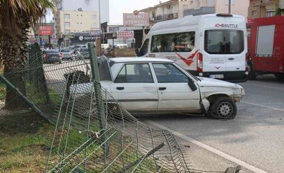 Antalya'nın Serik ilçesinde bir otomobil, orta refüjde bulunan demir korkuluklara çarparak durdu.