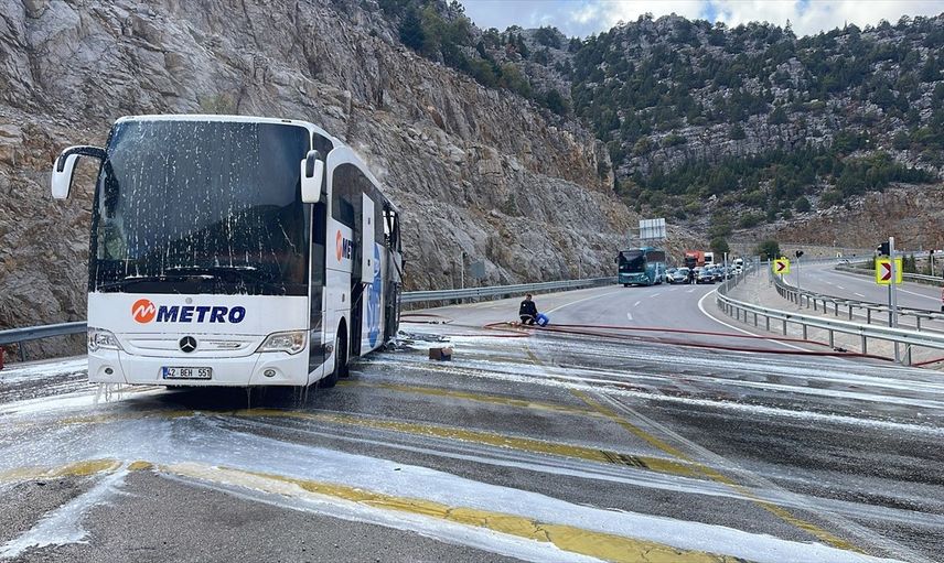 Konya'dan Antalya'ya giden S.S. idaresindeki 42 BEH 551 plakalı yolcu otobüsü, Seydişehir-Antalya kara yolunun 9. kilometresinde henüz belirlenemeyen nedenle yanmaya başladı.