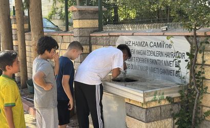 Kahramanmaraş'ta etkili olan sıcak hava hayatı olumsuz etkiliyor. Kentte bazı çocuklar, serinlemek için çeşmede yüzünü yıkadı..