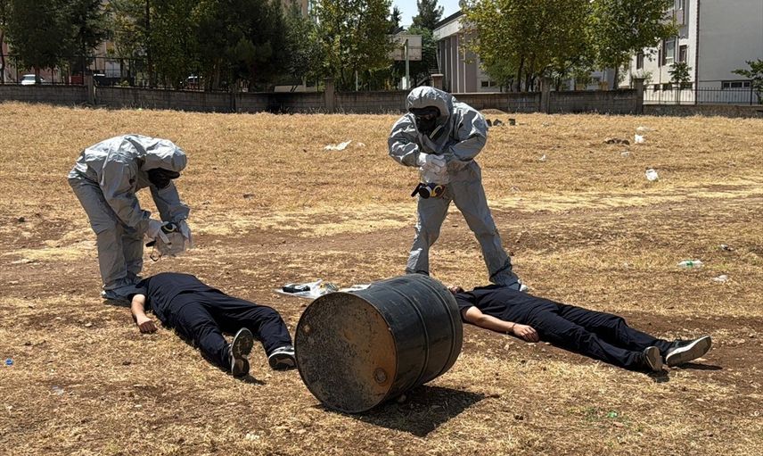 Siirt Eğitim ve Araştırma Hastanesi, KBRN tehditleriyle mücadele kapsamında önemli bir tatbikat gerçekleştirdi. Tatbikatta, senaryo gereği iki işçi hidroklorik asit dolu bir varille temas ederek baygınlık geçirdi.