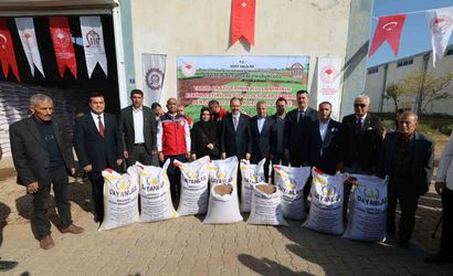 Dağıtım töreni, bölgedeki tarımsal üretimin güçlendirilmesi ve sertifikalı tohum kullanımının yaygınlaştırılması hedefleri doğrultusunda gerçekleştirildi.