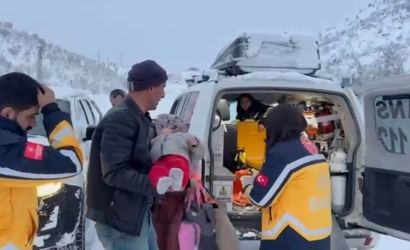 Kar nedeniyle kapalı olan yolda görev yapan ekipler, köyden alınan küçük çocuğu sağlık ekiplerine teslim ederek ambulansla hastaneye sevk etti.