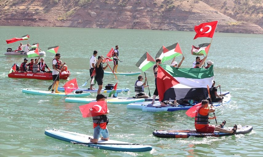 Filistin'e Destek Platformu tarafından düzenlenen programda, Ilısu Prof. Dr. Veysel Eroğlu Baraj Gölü havzasında kalan Botan Çayı Tahta Mendik mevkisinde vatandaşlar "Sumud için Özgürlüğün Dalgaları" sloganıyla toplandı.
