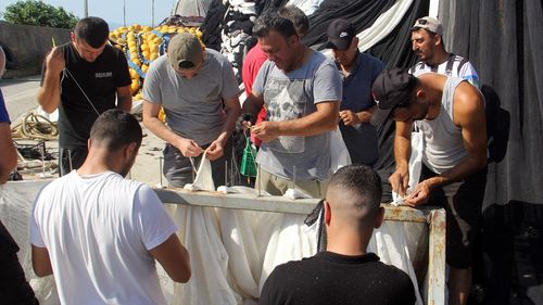 Sinop'ta balıkçılar, av yasağının 1 Eylül'de sona ermesiyle denize açılmak için limanda teknelerini bakım ve ağ onarımlarını yapıyor; umutlu bekleyiş sürüyor.