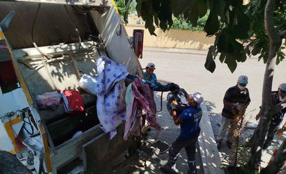 İlgili izinlerin alınmasının ardından ekipler, kiracı H.Ö.'nün yaşadığı üç katlı betonarme binanın ikinci katına girdi. Zabıta ekipleri içeride karşılaştıkları çöp yığınları karşısında şoke oldular. Belediyenin temizlik ekipleri, uzun süren bir çalışmanın ardından çöpleri kamyonlara yükleyerek mahalleden uzaklaştırdı.
