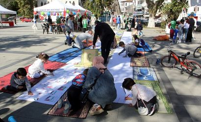 Sinop'ta, Yetim Vakfı ve İHH tarafından düzenlenen "Gazze'de hayalleri yok edilen çocukların sesini duyurmak için çiziyoruz" konulu etkinlik kapsamında onlarca çocuk bir araya gelerek İsrail'in Gazze'deki zulmünü kınayan resimler çizdi.
