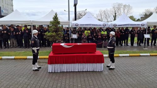Sinop'ta kalp krizi sonucu hayatını kaybeden polis memuru Sinan Şen için tören düzenlendi, cenazesi Kastamonu'ya gönderildi.