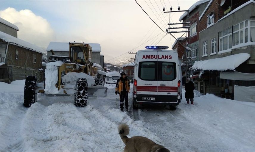 Sinop'ta, kar nedeniyle bulundukları yerde mahsur kalan 74 hasta ekiplerin yardımıyla hastanelere ulaştırıldı.