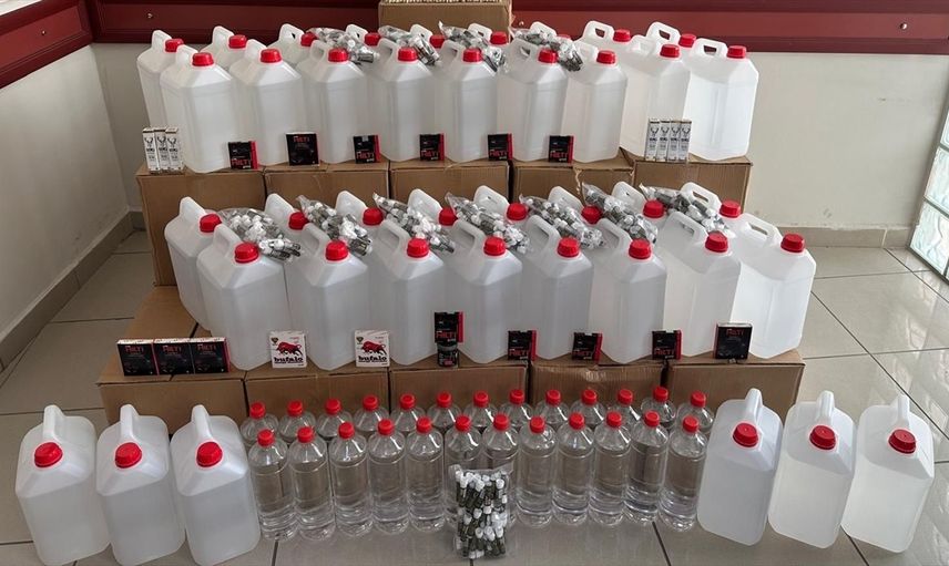 Ekipler, yapılan aramalarda toplam 560 litre kaçak ve sahte etil alkol, 600 alkollü içki yapımında kullanılan anason, 22 gümrük kaçağı cinsel içerikli ürün, 101 bandrolsüz puro ve bir miktar piyasaya sürülmeye hazırlanmış kaçak alkol ele geçirdi.