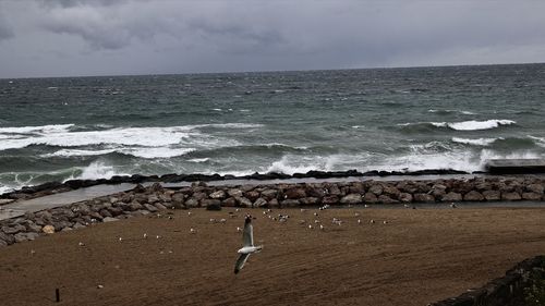 Sinop'ta saatte 50 km hıza ulaşan fırtına nedeniyle sahillerde yüksek dalgalar oluştu, balıkçılar denize açılamadı.