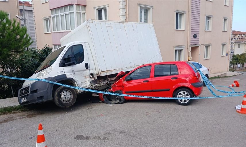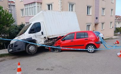 Araç, park halindeki 34 DU 4419 plakalı otomobil ile 55 SG 611 plakalı kamyonete çarparak durabildi.