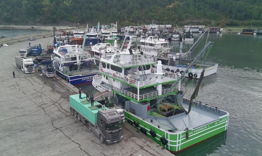 Sinop'un Türkeli ilçesi açıklarında avlanan balıkçılar, limana tonlarca hamsiyle döndü. Avlanan hamsi, Güzelkent Limanı'nda kamyonlara yüklenerek çevre illere nakledildi.