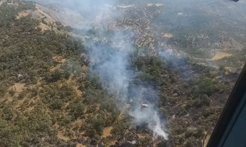 Şırnak'ta Bestler Dereler bölgesinde çıkan örtü ve orman yangınına, havadan ve karadan müdahale ediliyor.